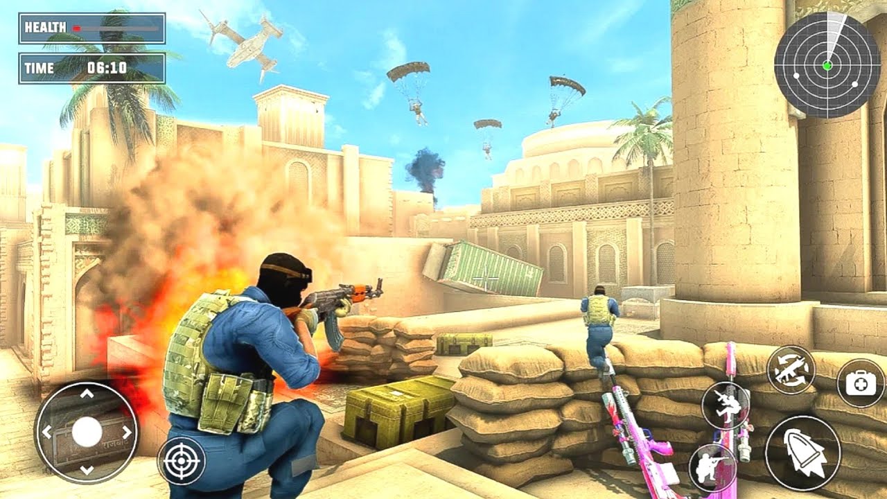 === FEATURES === Various modern weapons like Desert Eagle, AK47, machine gun, assault rifle, M4A1, AWP, GATLIN Bomb Diffusion Mission in SWAT team gun shooting game 2022 Best sniper shooting mission Crazy black commando soldier game in strike operation this critical is Completely offline and totally free to play war game missions Commando Assault War Game for Counter Terrorist Strike Can you keep your commando cool in the crossfire of war? Shoot in critical strike gun game full of best action war scenarios. Upgrade your weapons with the best available fps guns for real SWAT operations. Intense Raw in Critical Strike War Operations Use tactical shooter gun strike strategy for fire war duty army games. Run and Split! Save brothers! Shoot down the terrorists in this amazing critical gun counter strike operation. Shoot hard in offline games. The fury of the fire war is real! Engage in intense shooting storyline of offline battle of CS gun game war strike. Save Your Army of Brothers in Alpha CS Gun Shooting Game Defend your military base as the best sniper! Join offline gun games for real terrorist attack on your army base. Play the way you shoot best! Enemies have surrounded you! Bandits and shooters are everywhere in this critical shooting game. But luckily, you have unlimited ammo and free shooting CS guns. Collect coins to achieve weapon upgrades in war attacker games. Shoot the fps guns until you become the last man standing in Critical Strike Fire Games.