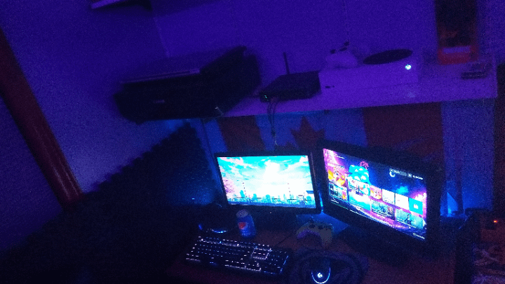 I used old monitors from downstairs and saved up for my Xbox and my KBM and headset also the PC (the one that looks like a wifi router 😭, only one I could afford at the time)