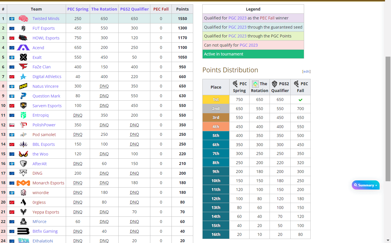 – HOWL/ACE has to just qualify for PEC Fall. Even if they get bottom placements, it’ll probably be enough. Maybe get top 12-13 to make it sure.