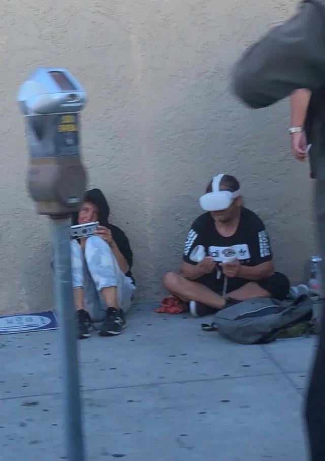 Homeless with vr headset
