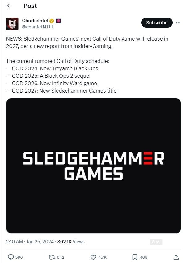 Honestly I’m looking forward to the next few years of Cod, the new management in place to really try to prove they can do Cod justice, in 2024 Treyarch leading a BO title *hopefully* with compromises this time with a long development time which would be the first since BO3, then 2025 the support studios potentially led by Raven for a BO2 direct sequel, 2026 I don’t really care about whatever IW are doing but hopefully they can redeem themselves and then 2027 SHG *hopefully* going back to a Advanced Warfare themed game would be great IMO.