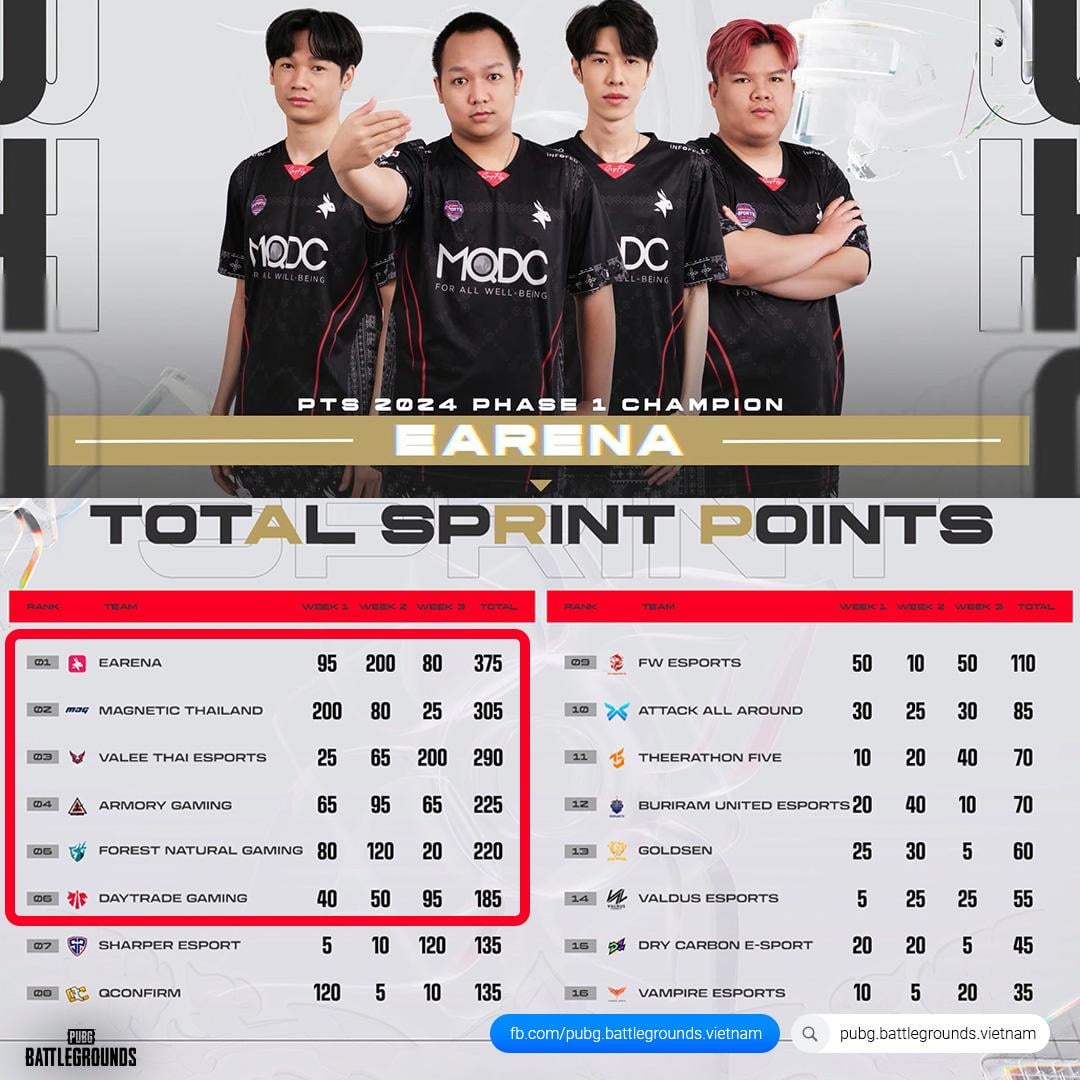 PUBG Thailand Series Result – Congrats to the Top 6 who qualified for PGS APAC!