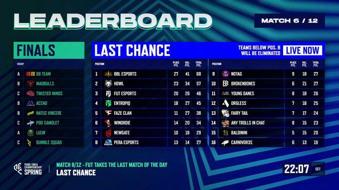 PUBG EMEA Championship Last Chance after 6/12 Matches