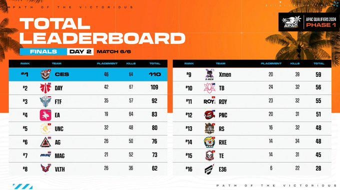 PGS APAC Day 2 Final Leaderboard