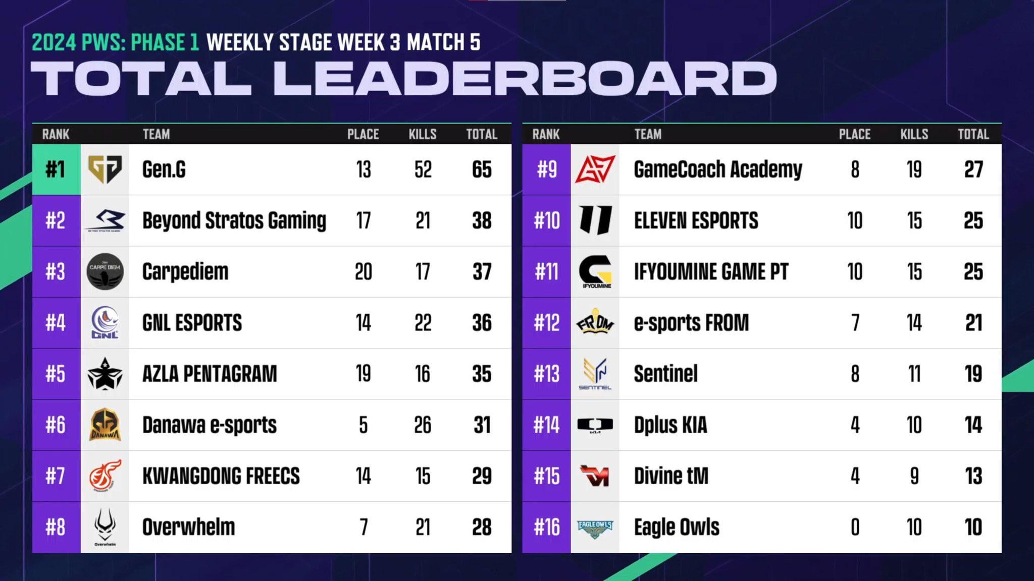 JacoBee93 2 years ago GenG really took personally the hate in roster announcement post, lol Also DKia… 🥲 I mean it’s 3 weeks for PGC points; but GF next week is what matters most. Let’s see. They finally subbed Starlord off Also DNW clicking, love to see that after losing 2 top players