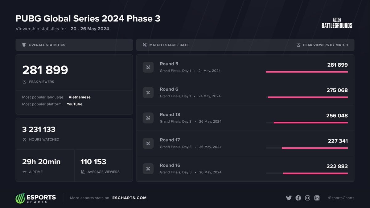 281.8k Peak Viewers for PUBG Global Series 3