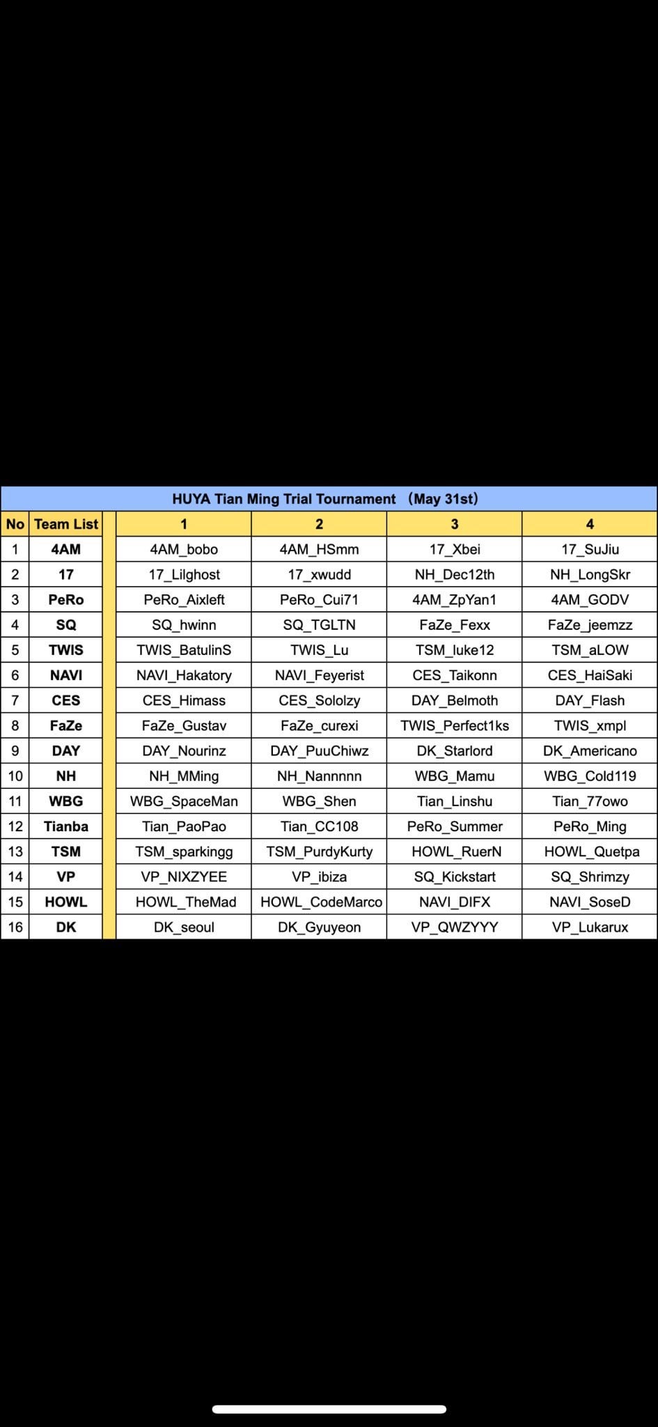 “17”, “TM”, “SQ” and “Faze” are insane teams.