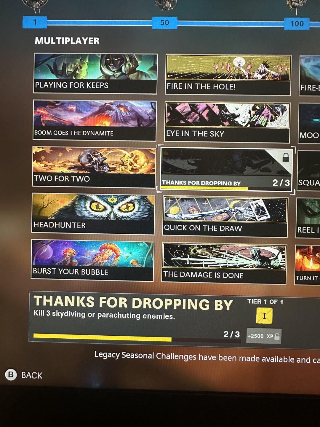 Would a few people be willing to get together to create a Fireteam lobby to help me finish these three challenges? The two Season 6 challenges are the only two I need left to complete all Season challenges from all six seasons, and the four piece dinner is the last multiplayer challenge I have besides a few more quad feeds. I really want to 100% multiplayer and these challenges are all I have left but unfortunately no one plays Fireteam anymore. Thanks!