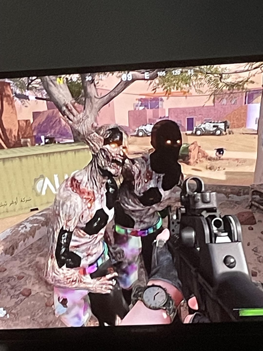 I’m playing a game of Onslaught Mystery Munitions and for some reason almost every zombie has multiple black/glitchy rainbow chunks in their body/head and even gore, projectile attacks, boss models, and the Aether Orb look like polygons! What is going on?