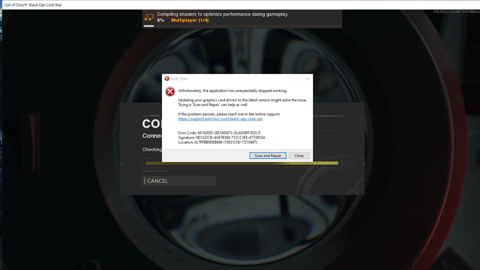 I just installed black ops cold war in my laptop but the problem is its not working perfectly. After Playing 10 to 20 minutes it shows an error and then get exit. 😢