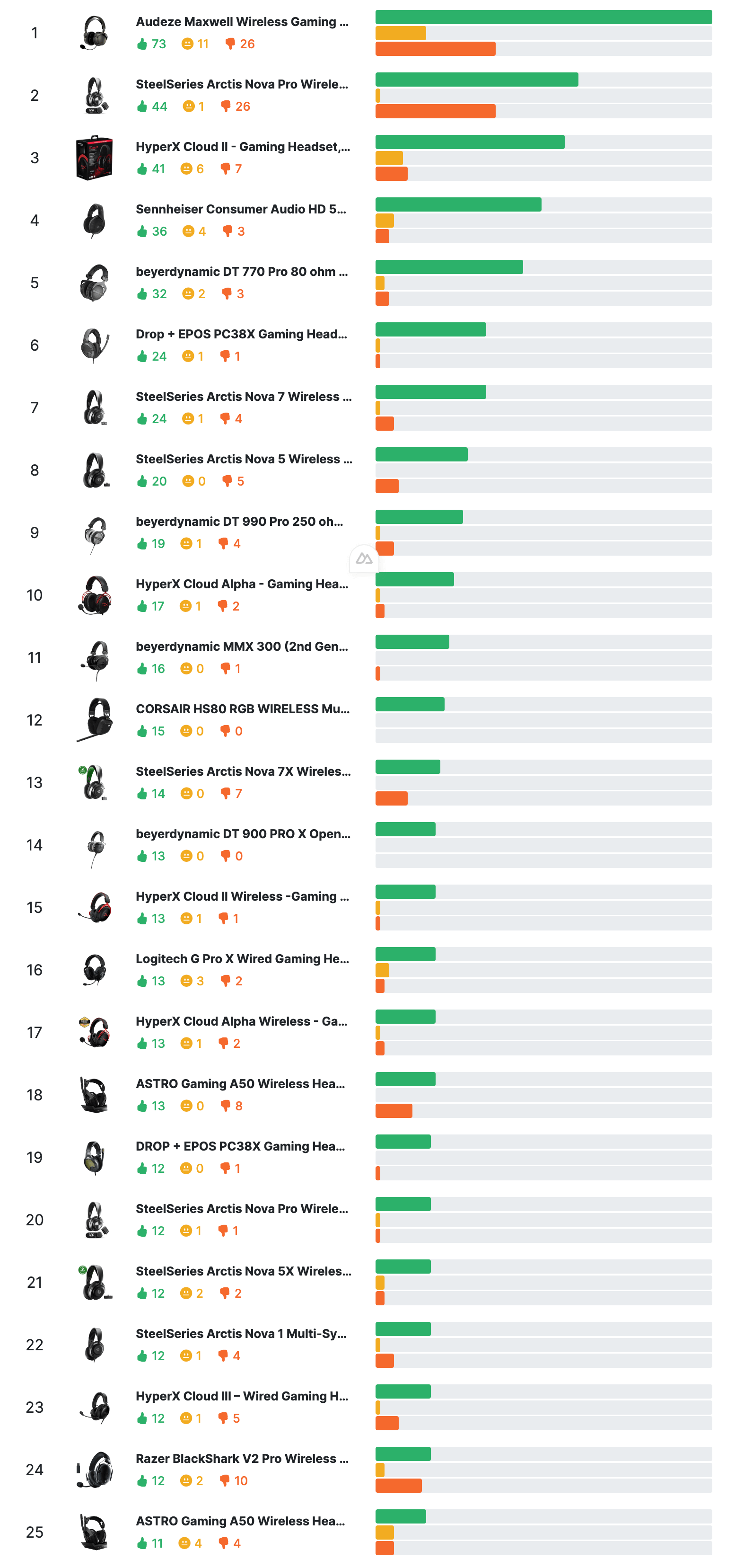 I’m doing some analysis on reddit data and looked at the most recommended gaming headsets in the past year. Thought I’d share the results here since people often ask for gaming headset recs here.