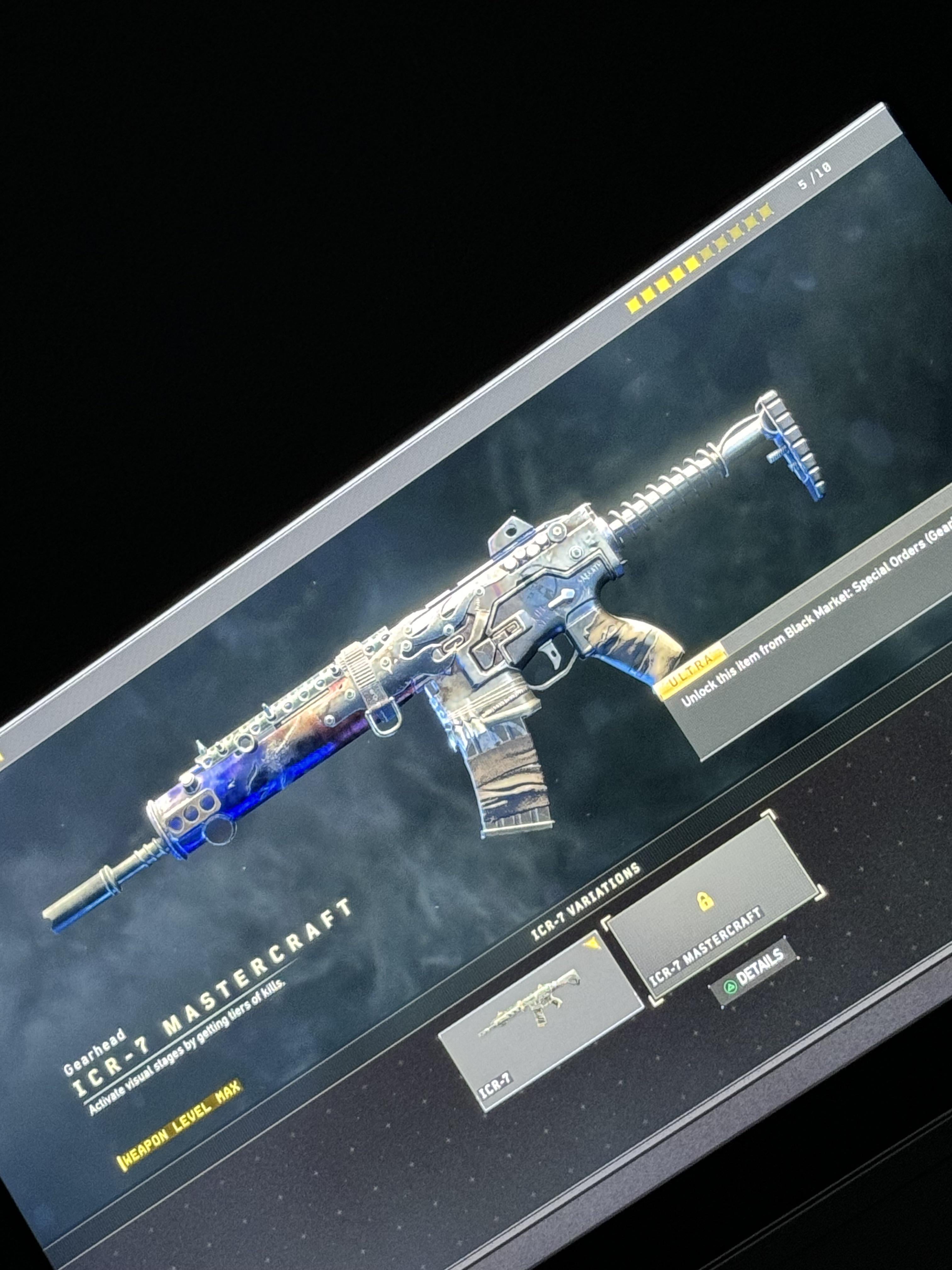 Hello everybody! Where can I buy the ICR-7 Mastercraft? I just bought a skin and it cannot be used until I have the Mastercraft version. I couldn’t find it on the black market to give in exchange 55 boxes. Thanks!