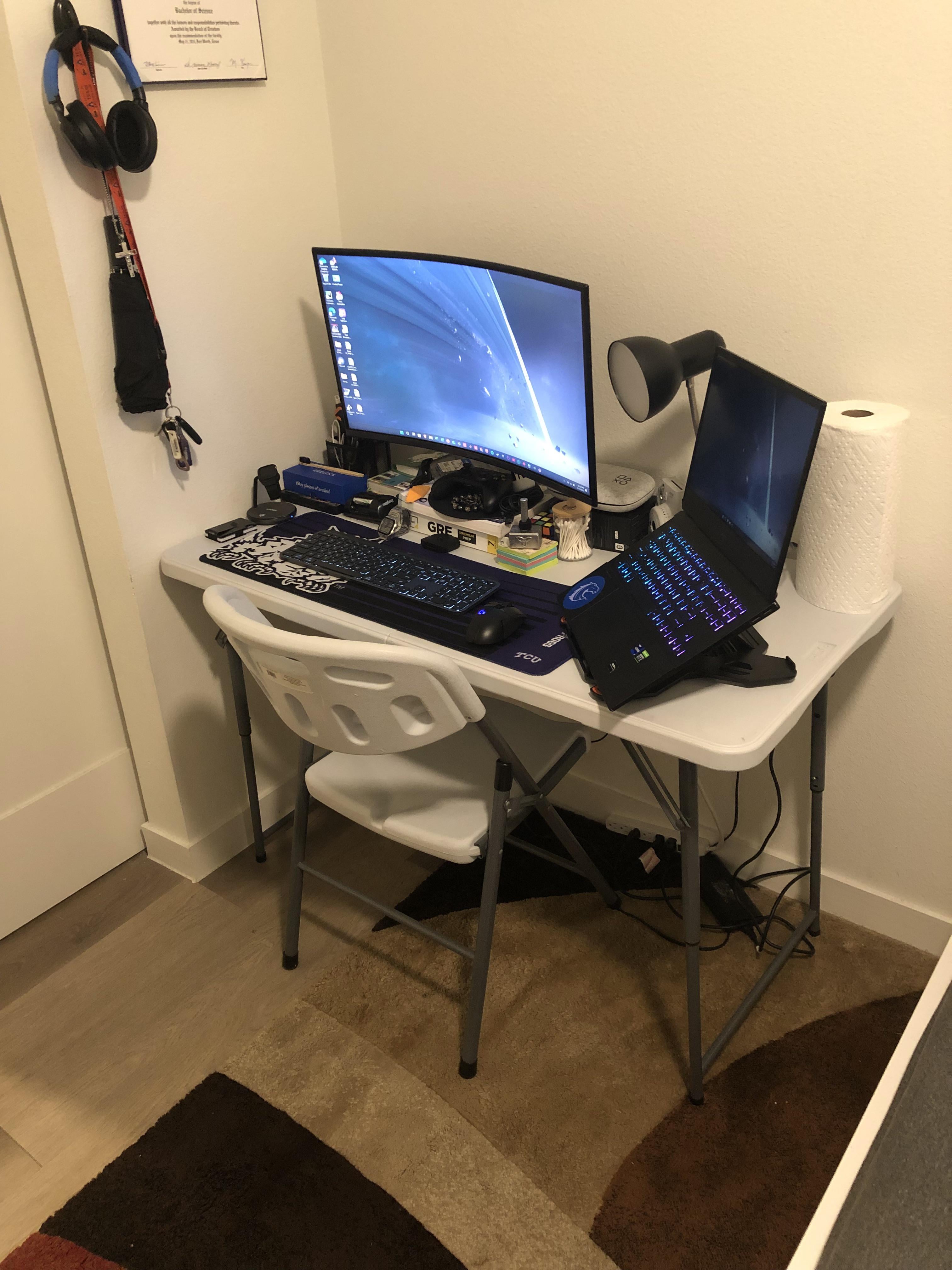 6. This is actually a decent setup, I had a plastic folding table for like 2 years, didn’t let me down