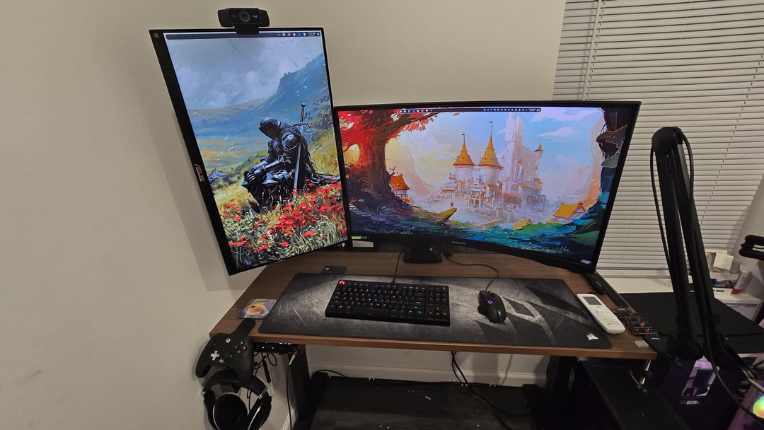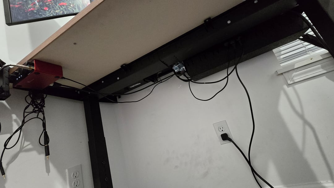 Slowly improving my setup for the past year and a half. Just used mounting tape to mount my surge protector and audio interface under my desk. I’m super proud of it so far! What should/could I do with the space I have?