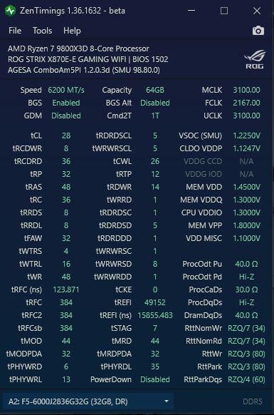 G-Skill TridentZ5 2×32 6000 c28-36-36-96 a-die kit.