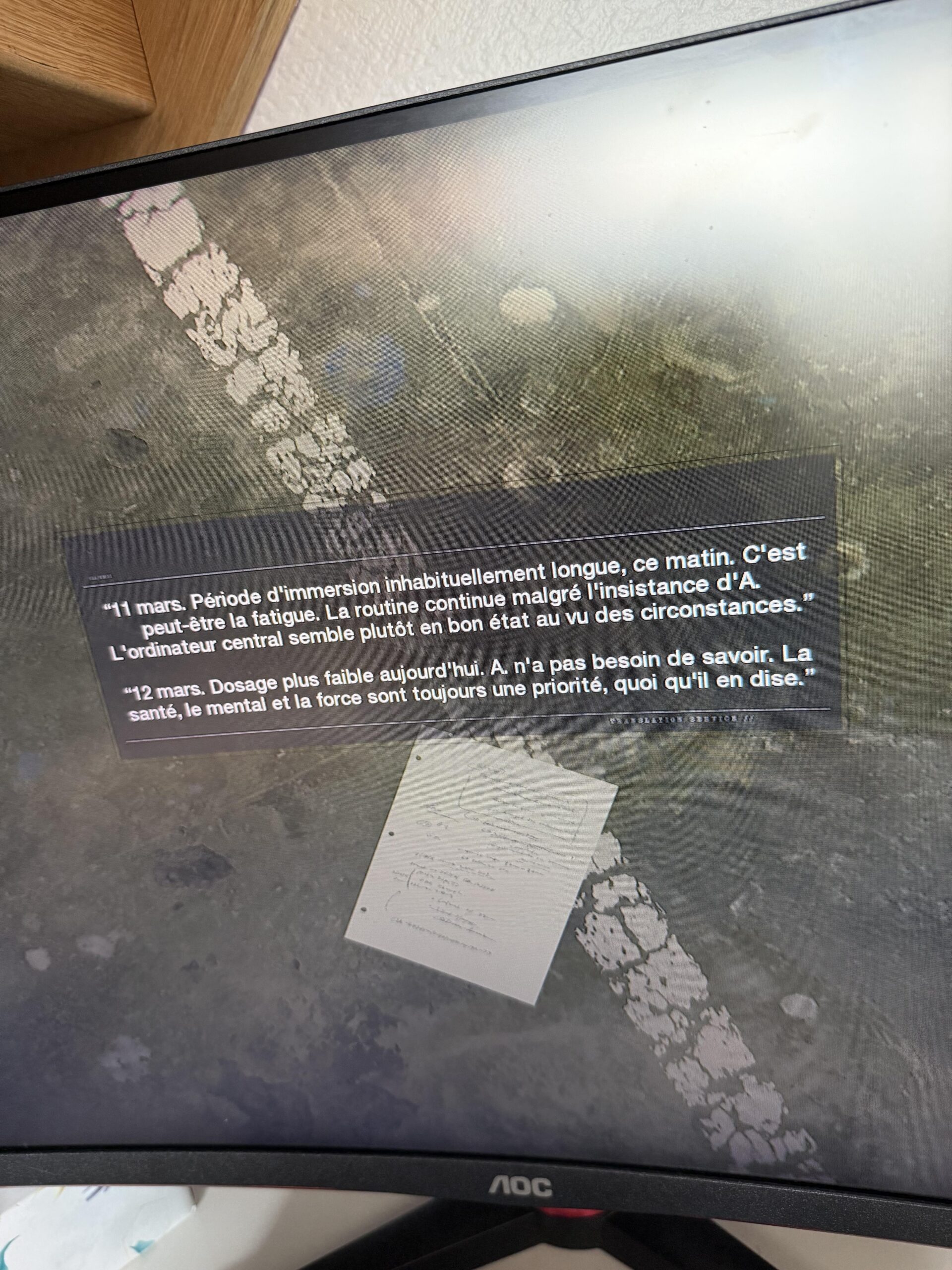 My game is in French, so the note is written in French. I’ve translated it into English above to make it easier for everyone to read.