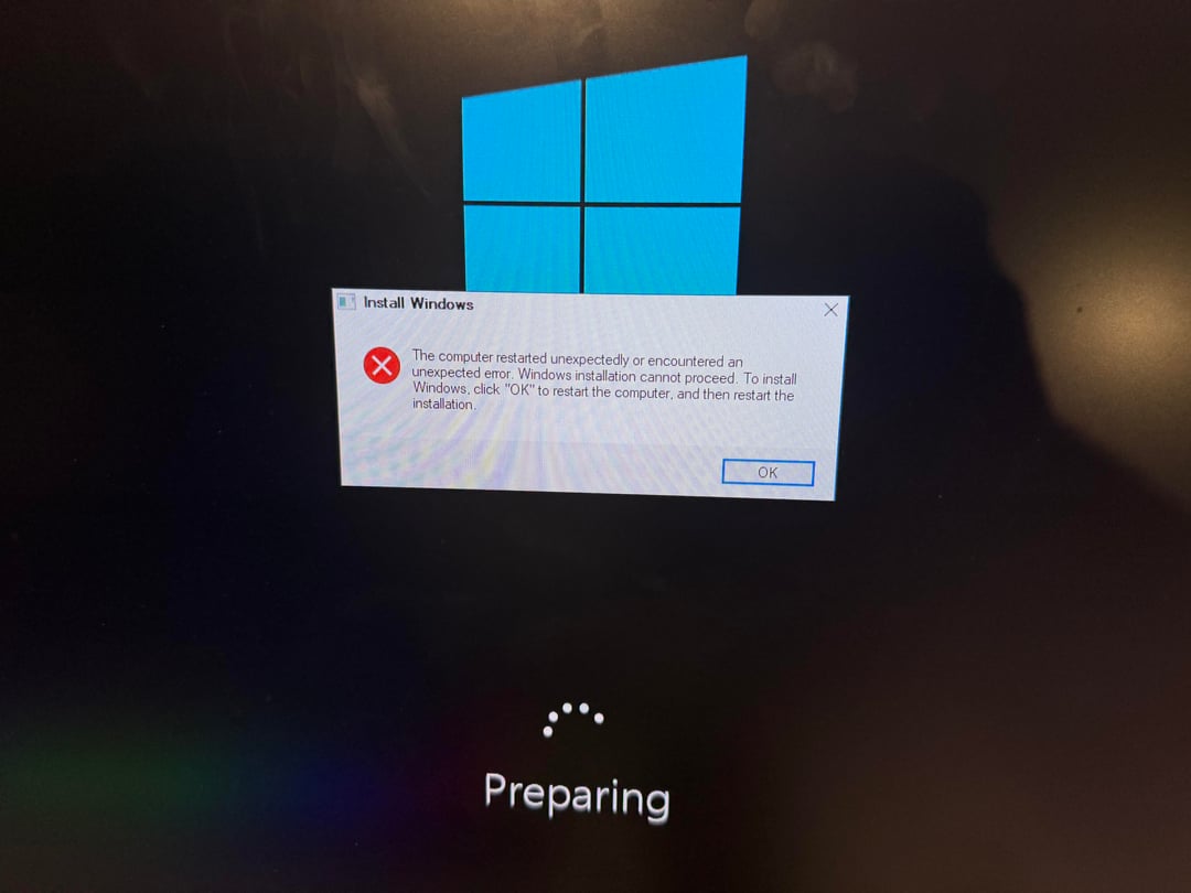 Brought a used gaming pc but it won’t load past the install windows error code what do I do?