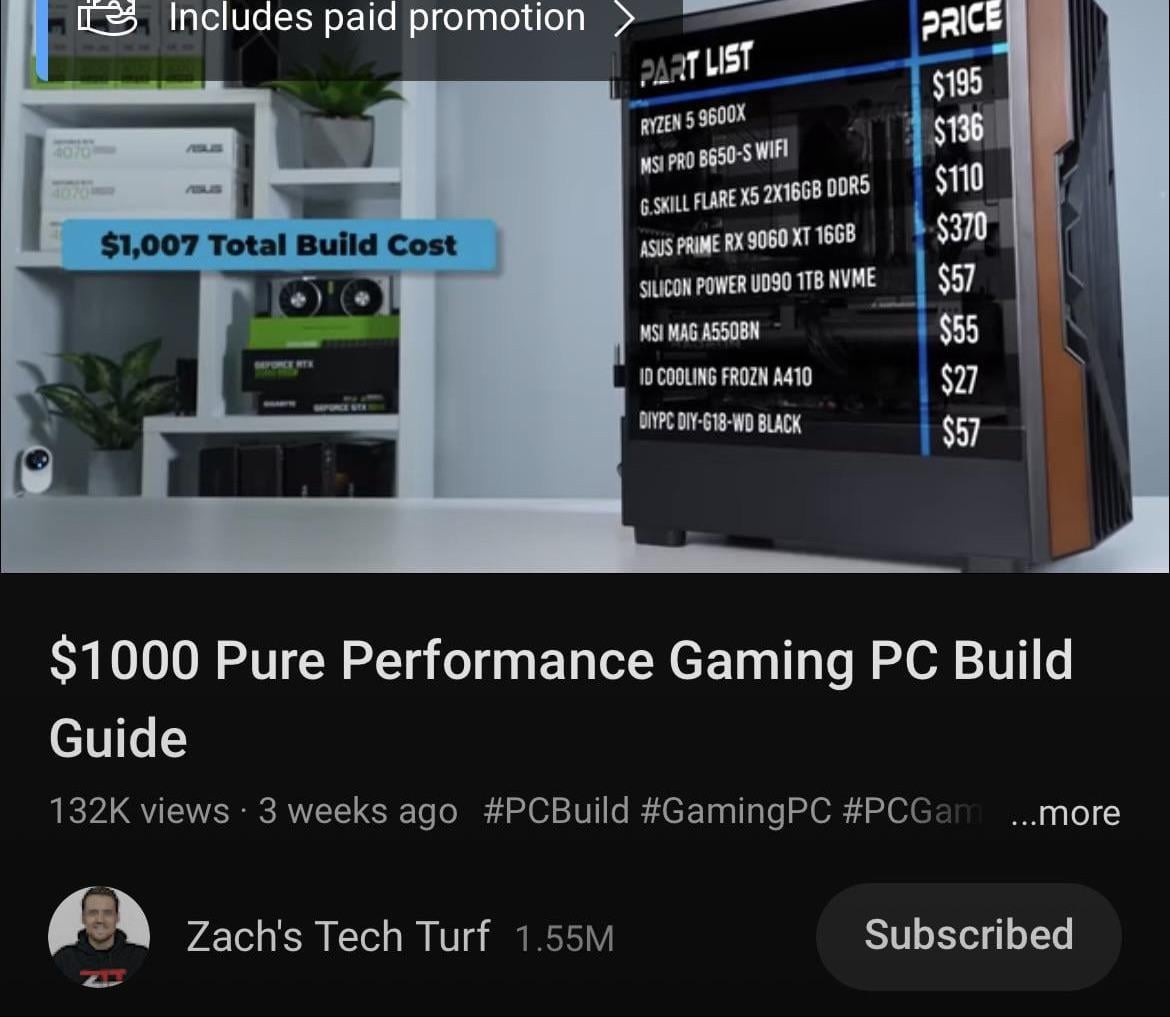 I’m planning to build a gaming PC and I followed Zach Tech Turf’s $1000 Pure Performance Gaming PC Build Guide. I’ve attached a screenshot of the parts list from his video.