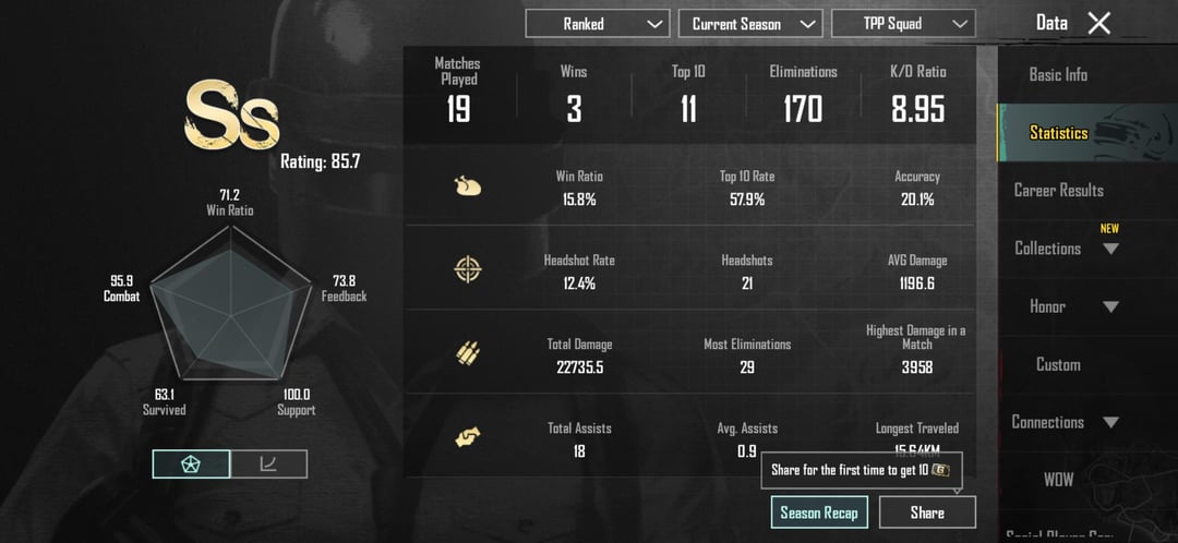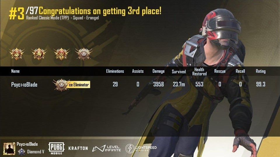Just returned to PUBG Mobile after 4years Reached diamond from Silver in 19matches Got 29 Kills in ranked diamond lobbyHow is that according to current day PUBG Standards Competitive PLAYERUNKNOWN'S BATTLEGROUNDSCompetitive PUBGPLAYERUNKNOWN'S BATTLEGROUNDSPLAYERUNKNOWN'S BATTLEGROUNDS CompetitionsPLAYERUNKNOWN'S BATTLEGROUNDS EsportspubgPUBG CompetitionsPUBG Esports