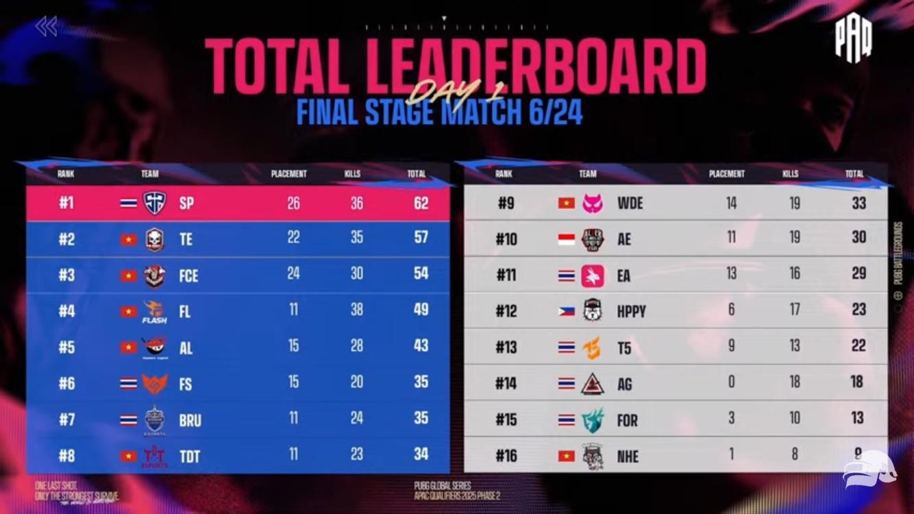 Top 8 are somewhat dominated by Vietnamese teams. 7 in the finals, 5 in top 8.Quite an underwhelming performance for EA, T5 and FOR. But it’s only day 1 so nothing’s guaranteed yet. Competitive PLAYERUNKNOWN'S BATTLEGROUNDSCompetitive PUBGPLAYERUNKNOWN'S BATTLEGROUNDSPLAYERUNKNOWN'S BATTLEGROUNDS CompetitionsPLAYERUNKNOWN'S BATTLEGROUNDS EsportspubgPUBG CompetitionsPUBG Esports