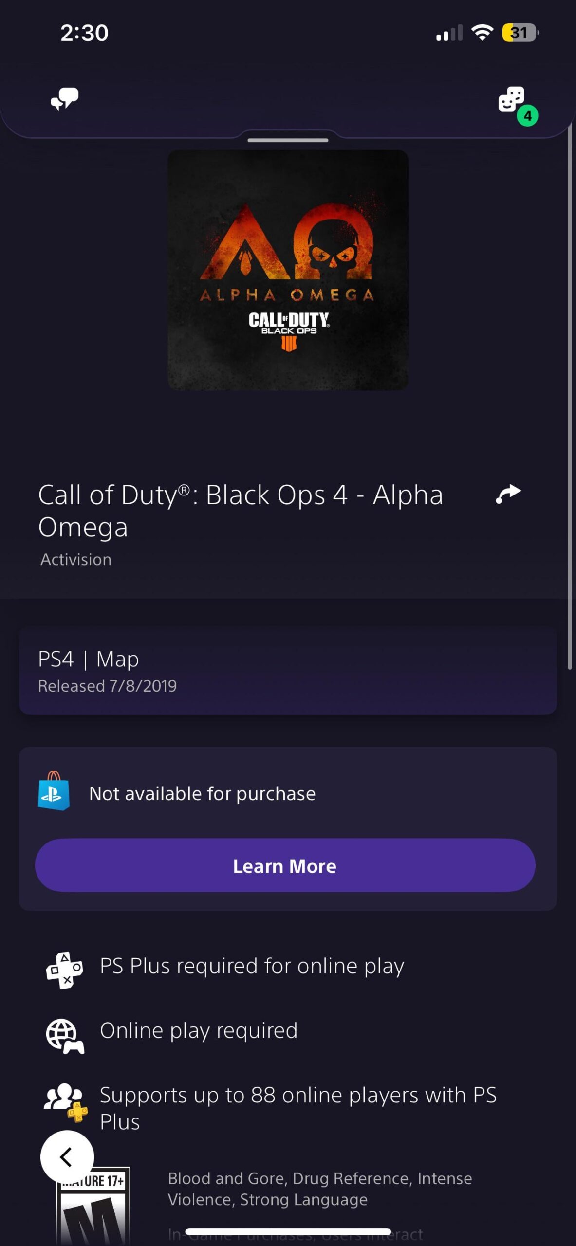 It says unavailable on the ps store and ps app, any suggestions? black ops 4call of dutyCall of Duty Black Ops 4codcod black ops 4
