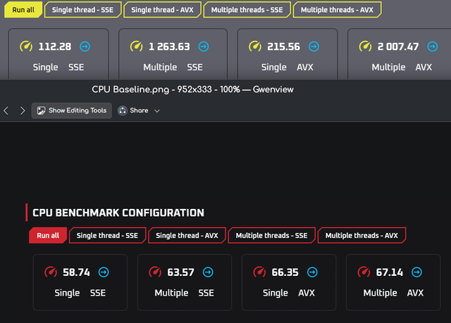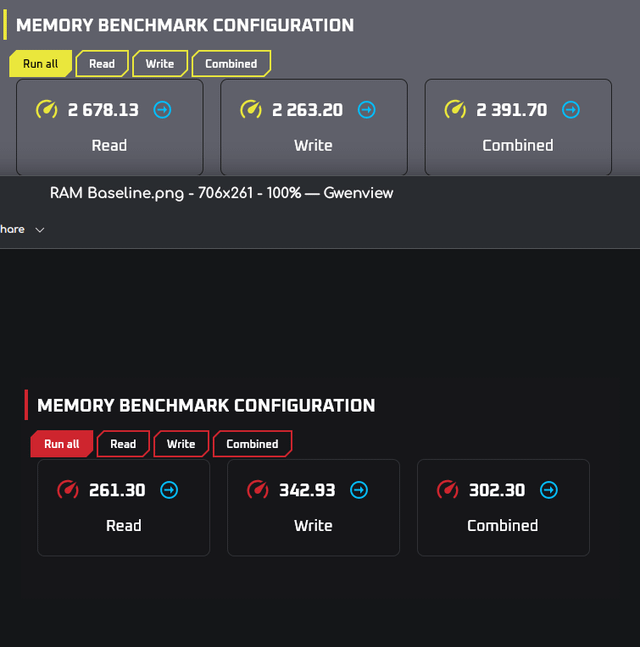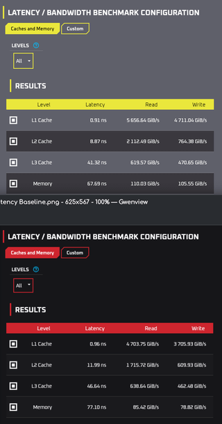Ditched windows and got a hell of a deal on a 13700kf so I decided to figure out how to OC with them both. It's a little harder to find decent tests on linux but all in all i think I did a fairly ok job. It's stable overnight in y-cruncher (7+ hours) and running SNT with furmark blasting my GPU junction temp up to 102C. tried stablizing 7600 RAM all the way up to 1.65V with no luck. it will post and run up to 8200 but errors out in SFTv4 or N63 no matter what combination of voltages, timings, and LLCs I could think of. Same with 6GHz single core up to 1.45V. Can push ring and ecores but that lowers pcore performance so backed them off a bit. Any suggestions for benchmarks I can run through fedora would be appreciated. Sidenote: the L3 cache read score in red in the last pic seems to be an anomaly. I've retested at baseline and OC and never got 638 again. Not sure how that happened.
