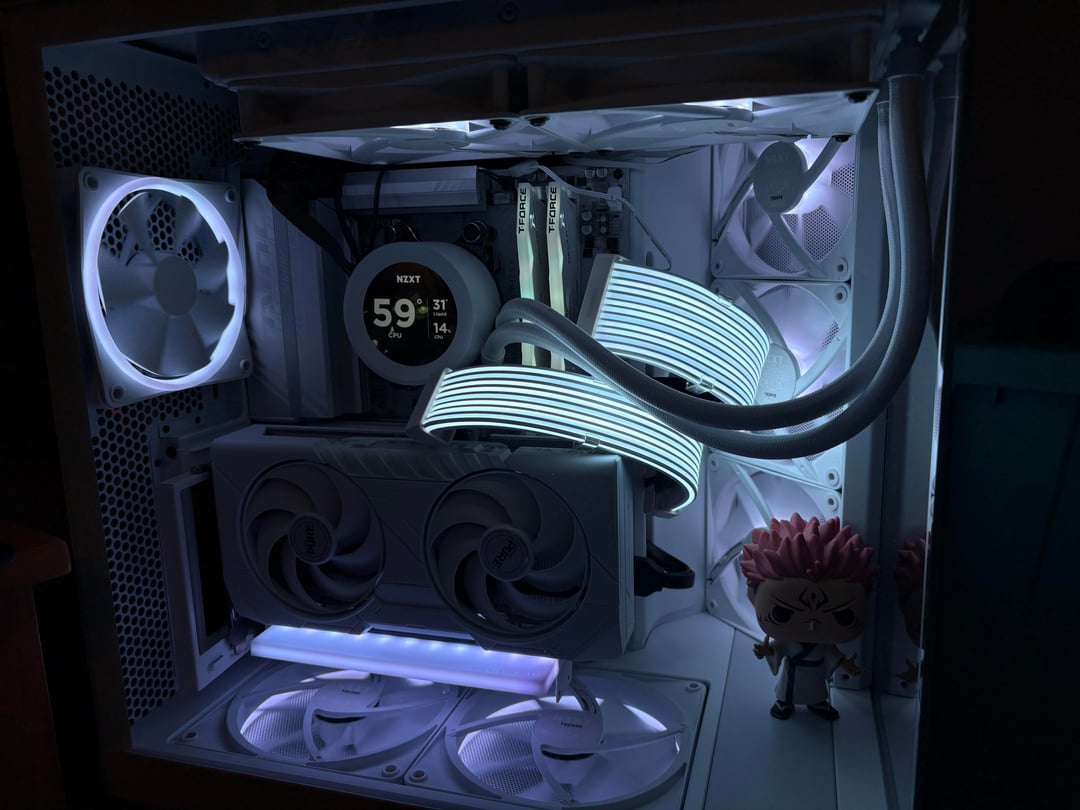 Pretty happy, though I definitely took far too long Ooga boogaing on the wiring. Apparently you can’t stuff 8 fans into one fan channel (face palm insert here). Anyways I’m super proud of the way she turned out, I absolutely love the all white aesthetic I was able to put together! What do you guys think, what can be improved?