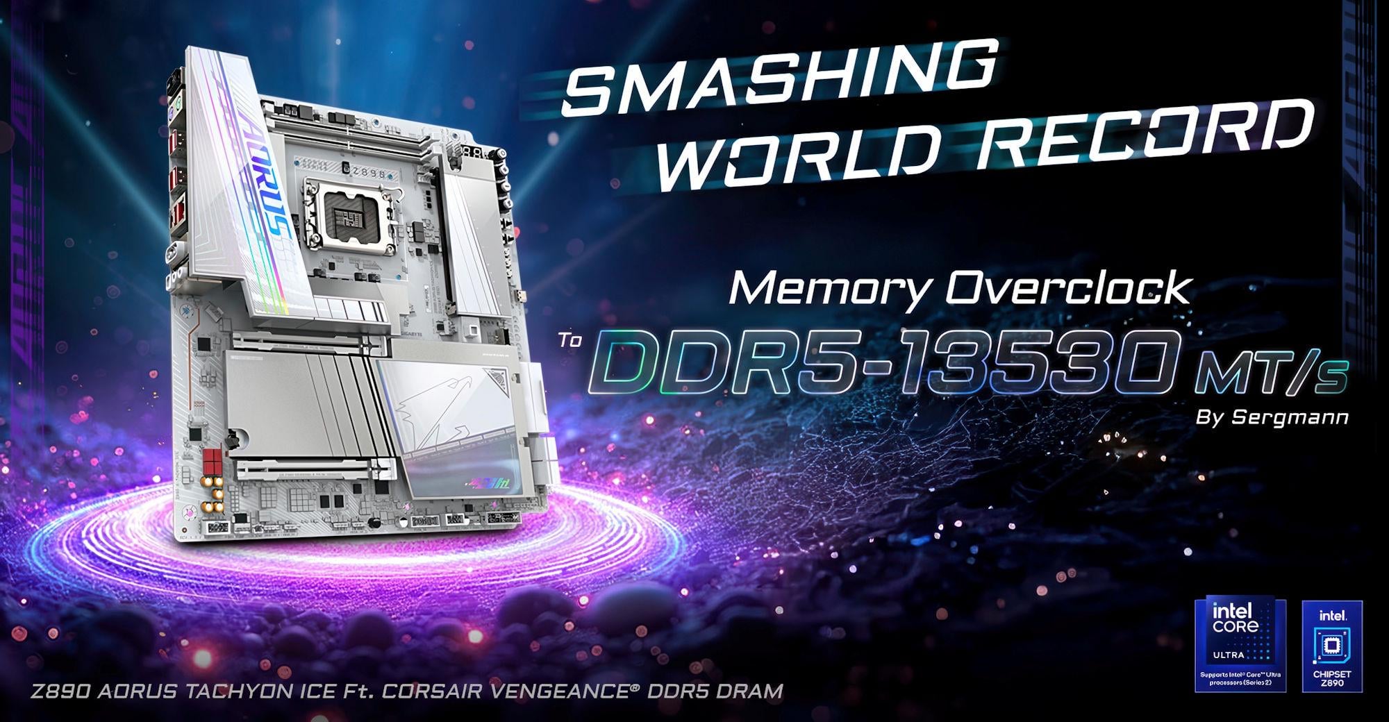 New DDR5-13530 memory world record set on GIGABYTE Z890 AORUS TACHYON motherboard game pcOver ClockingPC