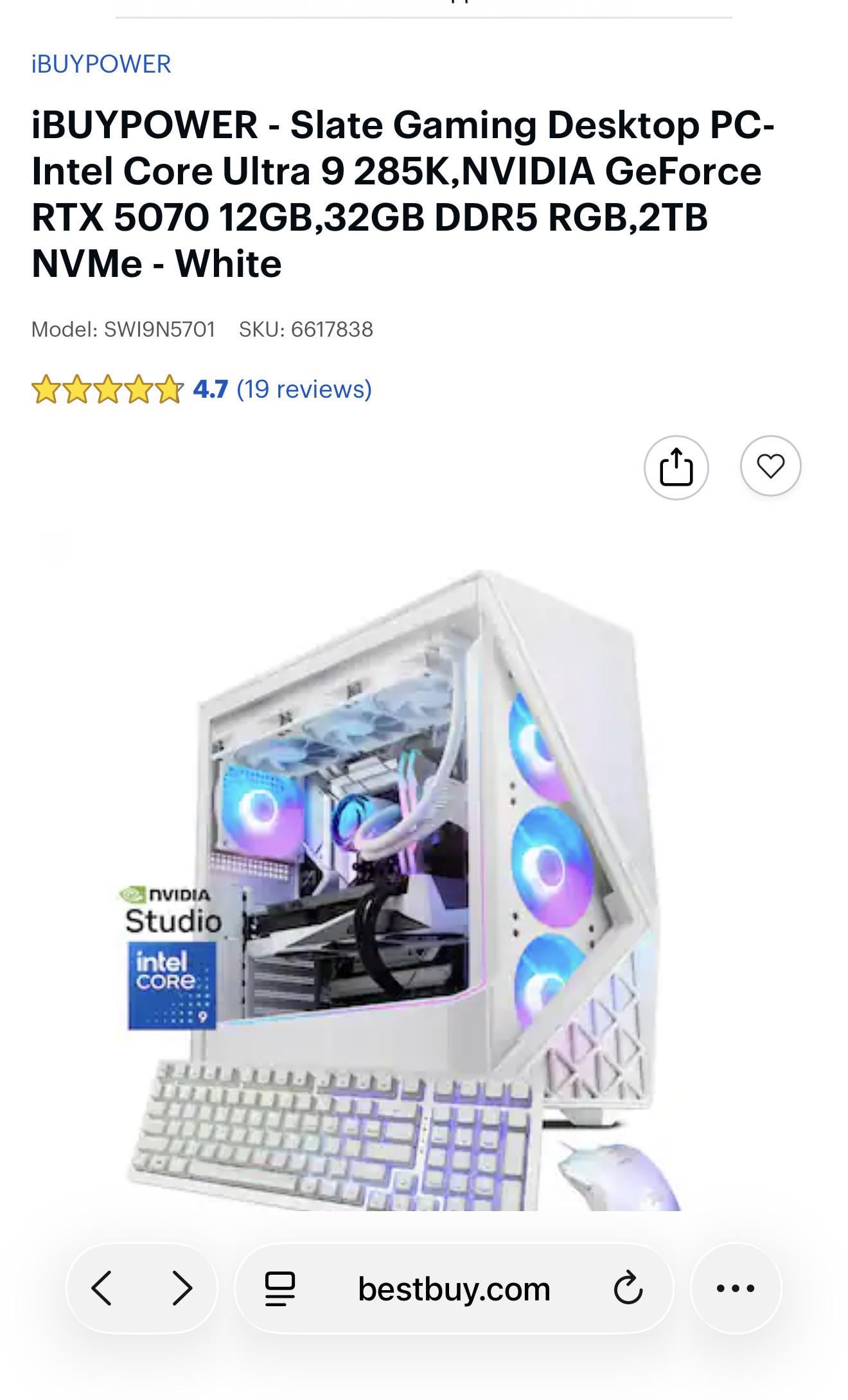 Is this a decent pre-build for the price? I play Fortnite mostly. I was toying with the idea of building my own but a bit impatient to wait for all the parts to come in. https://www.bestbuy.com/product/ibuypower-slate-gaming-desktop-pc-intel-core-ultra-9-285knvidia-geforce-rtx-5070-12gb32gb-ddr5-rgb2tb-nvme-white/J3R75JY88V#tabbed-customerreviews