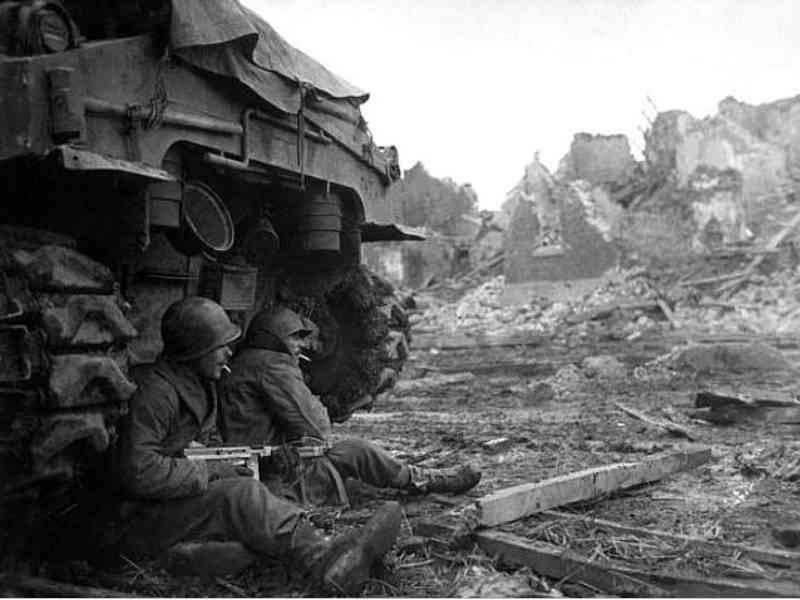 GI’s Sheltering Behind a Tank