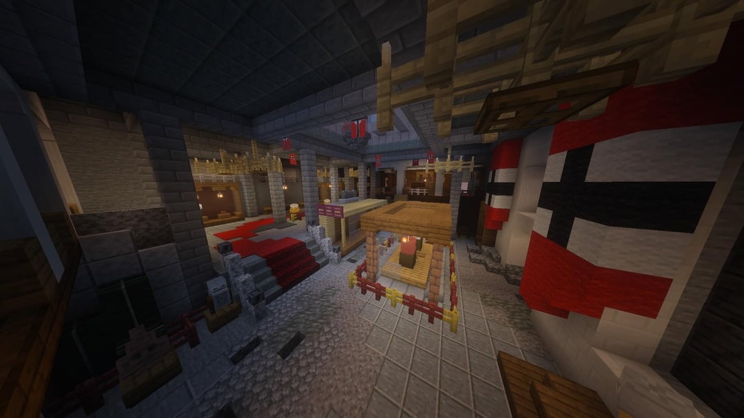 Here I have completed building the Museum (with the axe and blimp anchor) as well as most of the Theater, still need to build the backstage area.