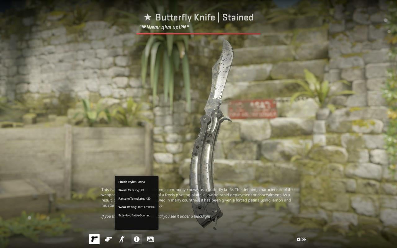 Even when it's stained and battle scarred I'm still pretty happy I got this knife I wanted for so long!! counter strike 2cs2