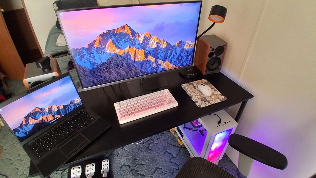 My Average Development Setup, Cable Management is a WIP, PC Stand also WIP Average Battle StationsAverage Battlestations