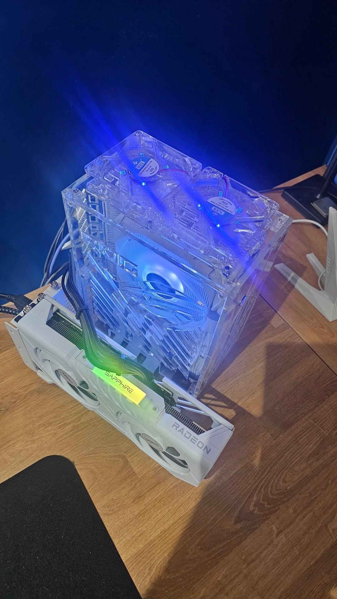 The case only fits a half height card so this was my workaround. The full height slot is bolted to the case on the back and supported below so it's pretty secure.