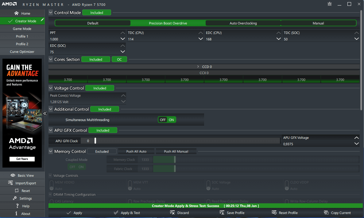 Applied pbo to Ryzen 7 5700 non-X, can’t tell if it worked or not