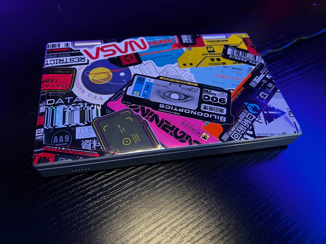 hello all! this is my really, really tiny cyberpunk laptop i thought this community would like? provided 2 really nice desktop wallpapers, anything i should do to this? constructive critique is lovely. thank you! CyberpunkCyberpunk MemesHigh TechLow Life.