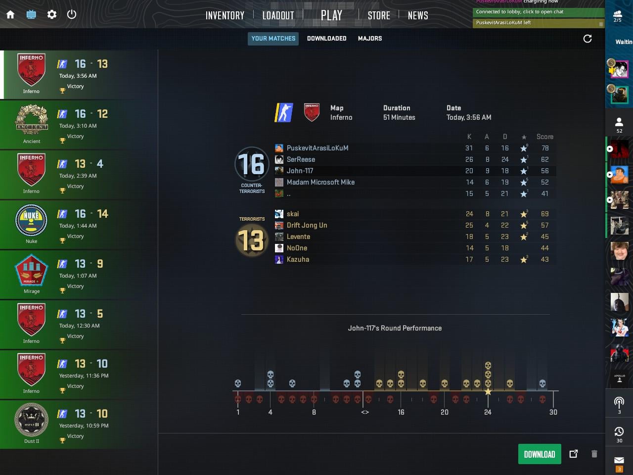 New personal best, 8 wins in a row. Started at 12k, now im at 15k (John 117) Counter strikecounter strike global offensivecs:goGlobal offensive