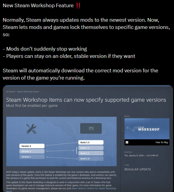 Steam Workshop mods will now automatically match your game version, making modding much easier gaminggaming memeGaming Memesmeme