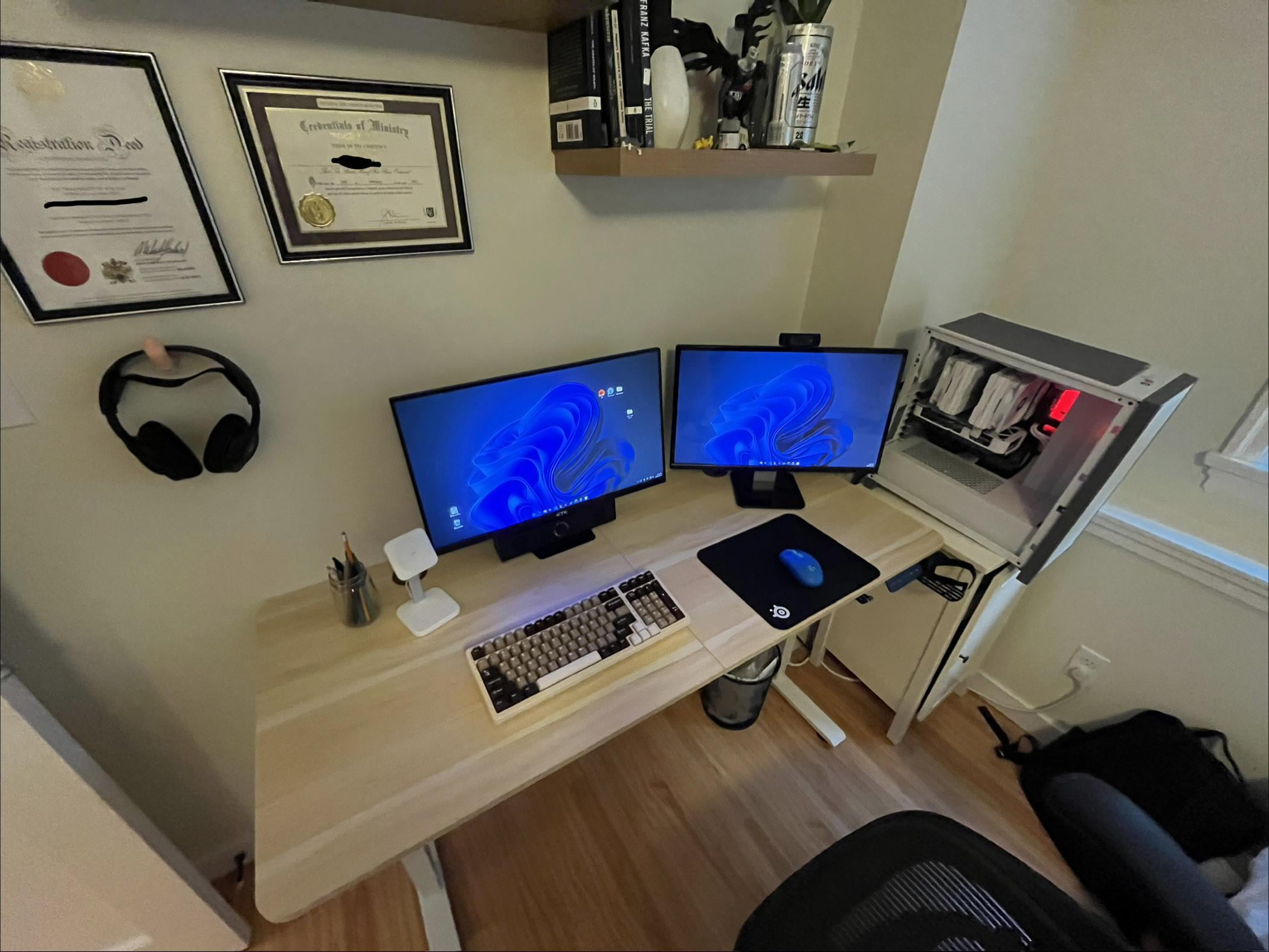 Right now, my workspace works, but it doesn’t feel good to use. It feels cramped, shallow, and kind of sterile, and I’m struggling to make it feel calm or cozy without sacrificing functionality. I mainly use it for gaming and general productivity, but I find myself subconsciously avoiding using it for more than an hour at a time.