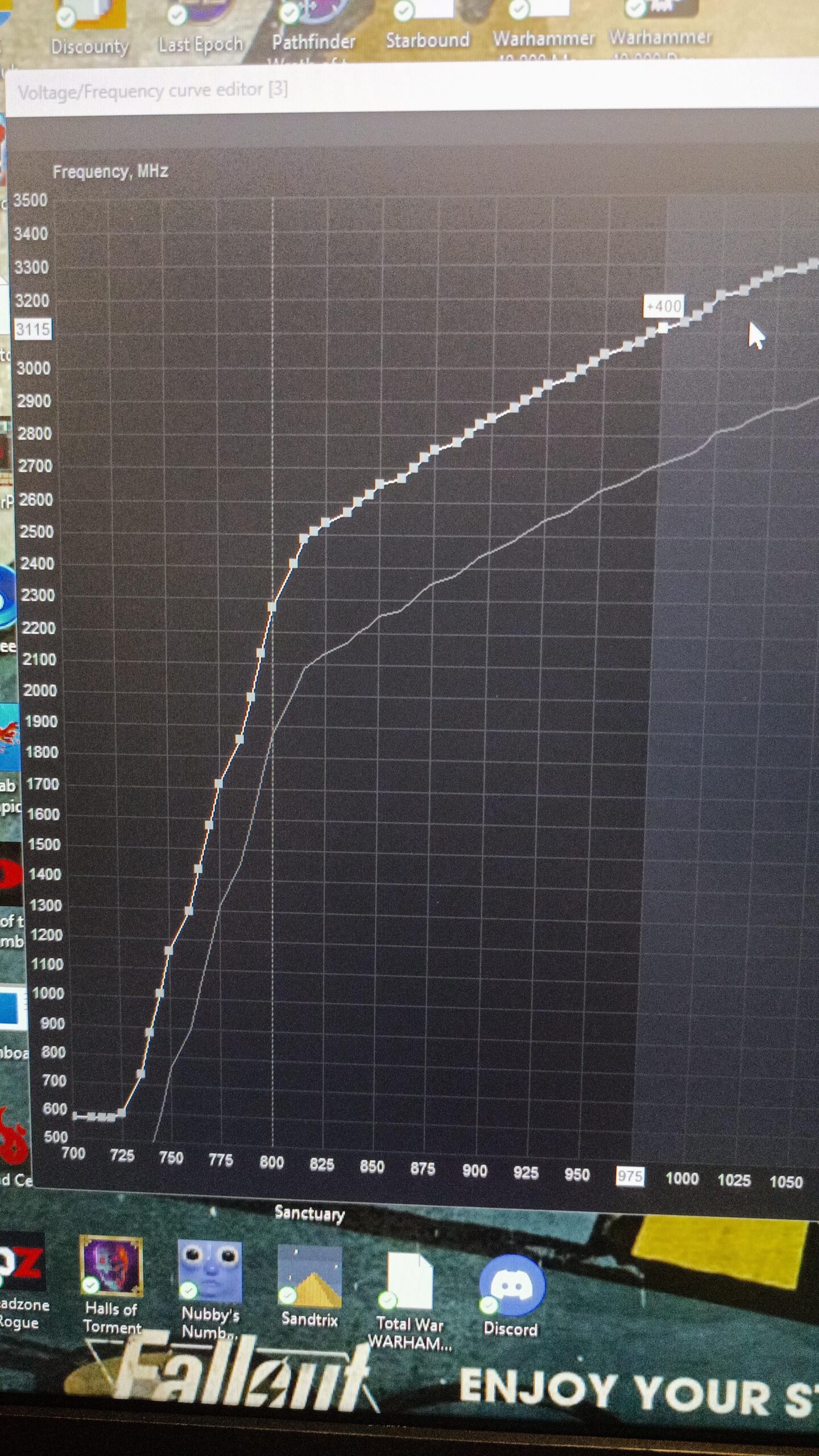 Sorry for the picture and not the screen shot. But I've been watching some videos about undervaulting and OCing. But they are always one or the other. I noticed that when I set a under vaulted curve, and then try to edit the core clock it changes the curve. Should I only overclock the memory? Or would flattening out the curve at 975 be worth doing? I'm brand new to this so sorry it these are dumb questions.