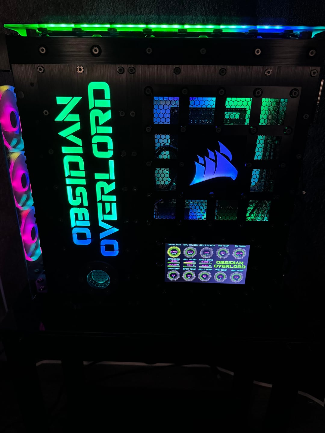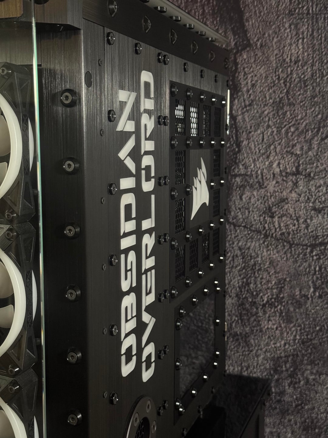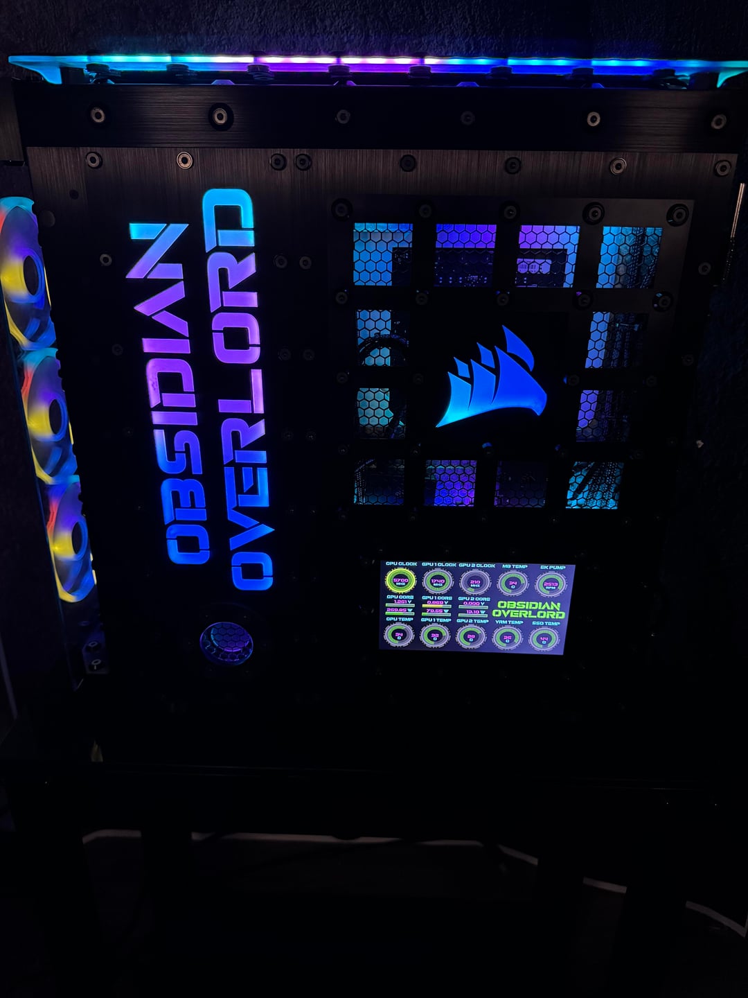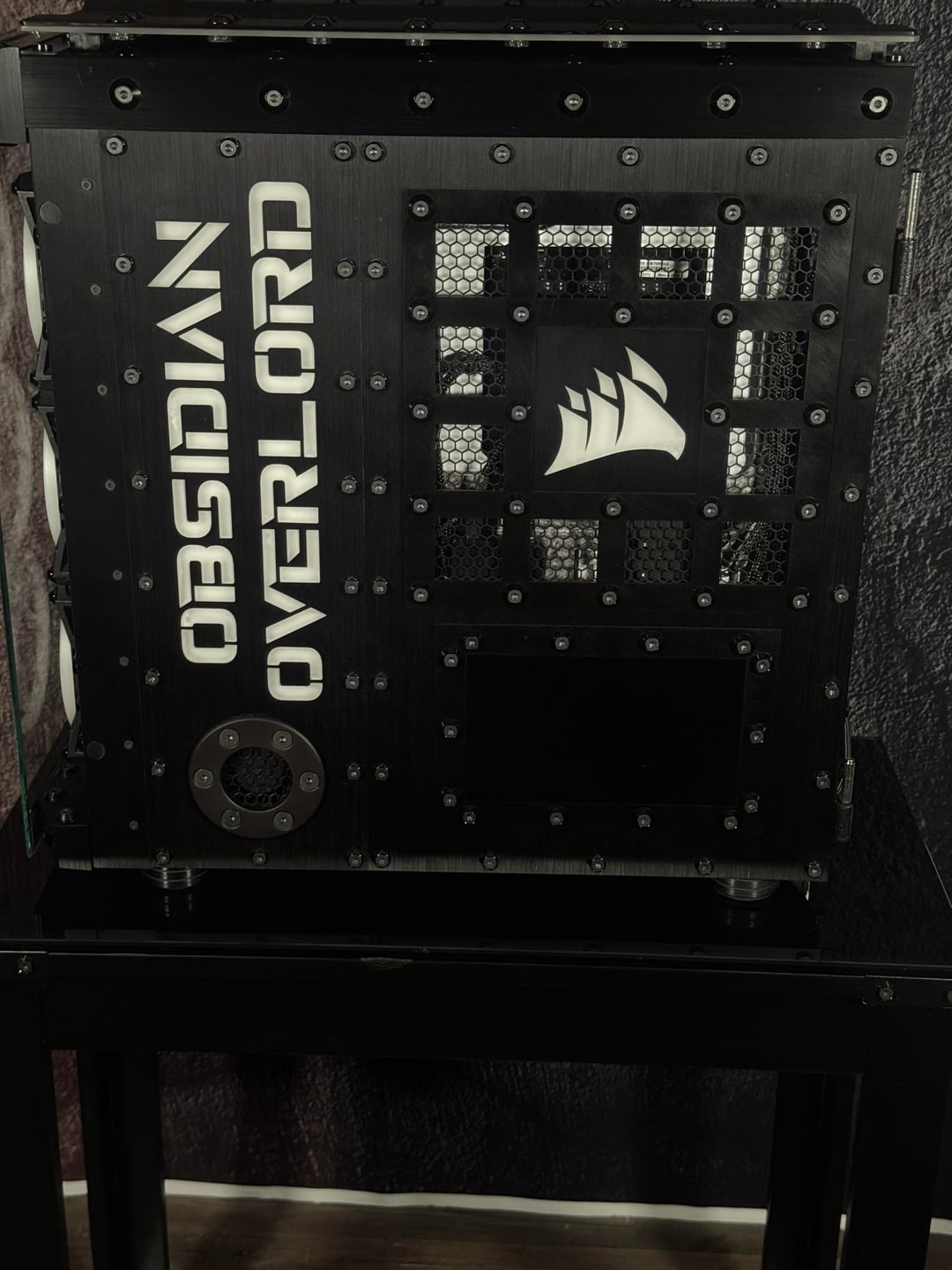 Then there is the LED lighting, which I believe I have taken to a whole new level. There are hundred of LED's in this rig, and they are all being run by Corsair controllers. I have illuminated this rig, through the implementation of illuminated panels. This is much different than the traditional RGB lighting most are use to seeing. Most RGB lighting is already incorporated into the component, or you may have a few LED strips. These are custom made illumination panels, that are set in the brushed anodized aluminum.