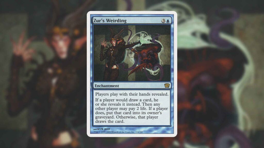 That said, revealing players’ hands is just a side-effect of Zur’s Weirding’s key ability. Allowing any player to deny key draws in exchange for life, Zur’s Weirding can bring the game to a standstill. Of course, this also affects your draws, so you’ll need to have a way to tip the scales in your favor.