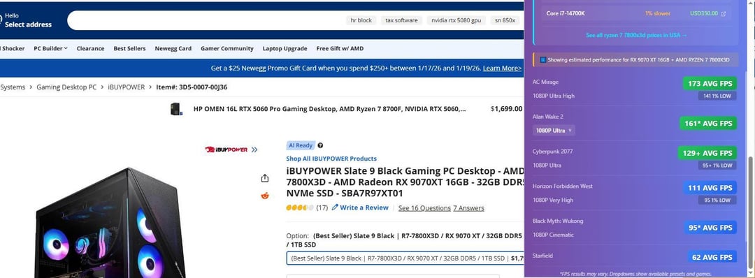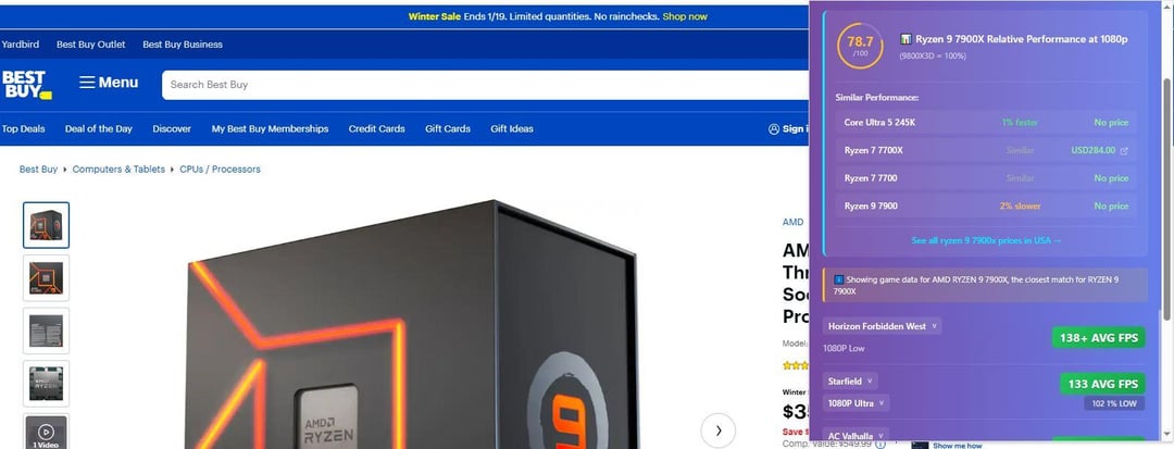 It works by clicking the extension icon while you're on the product page of Amazon, Newegg or Best Buy (.com versions), and it will bring up an overlay with video game performance.