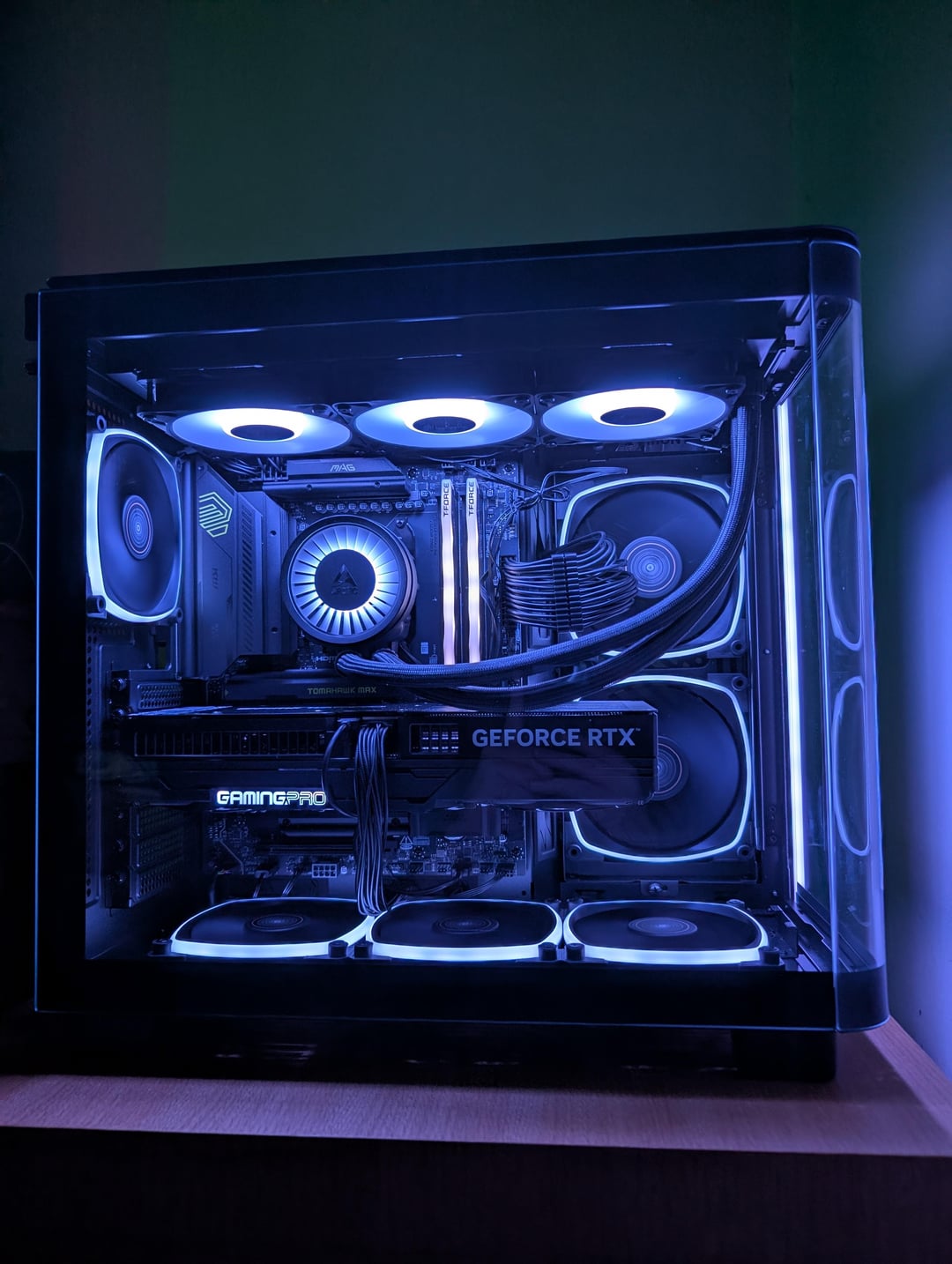 5080, 9800x3d, 32gb (very expensive) ram, 2tb SSD, Arctic liquid pro 360 AIO.