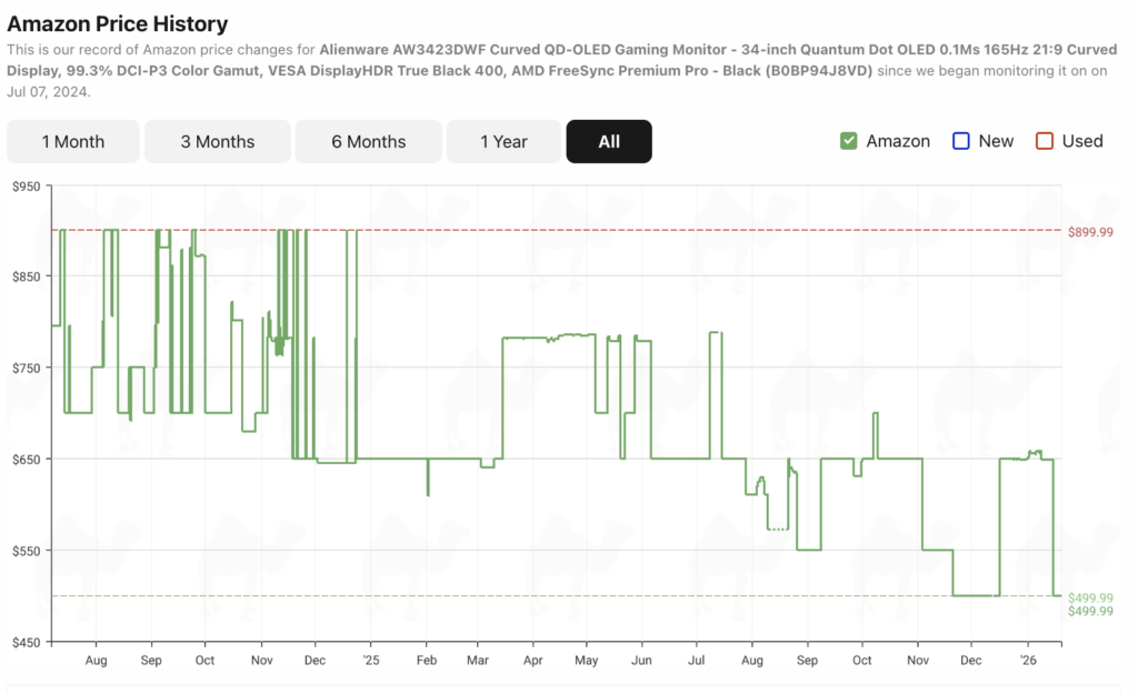 This superb Alienware 34-inch curved gaming monitor is back down to its lowest price again on Amazon. Reduced from $699.00 to $499.99, you can now save almost $200 and score yourself something seriously impressive for immersive, high-framerate gaming, and ideal for content creators, too. Notable features of this monitor include its stunning QD-OLED display, which delivers incredible contrast and color, AMD FreeSync Premium Pro, and impressive 99.3% DCI-P3 color, which makes it great for video editing.