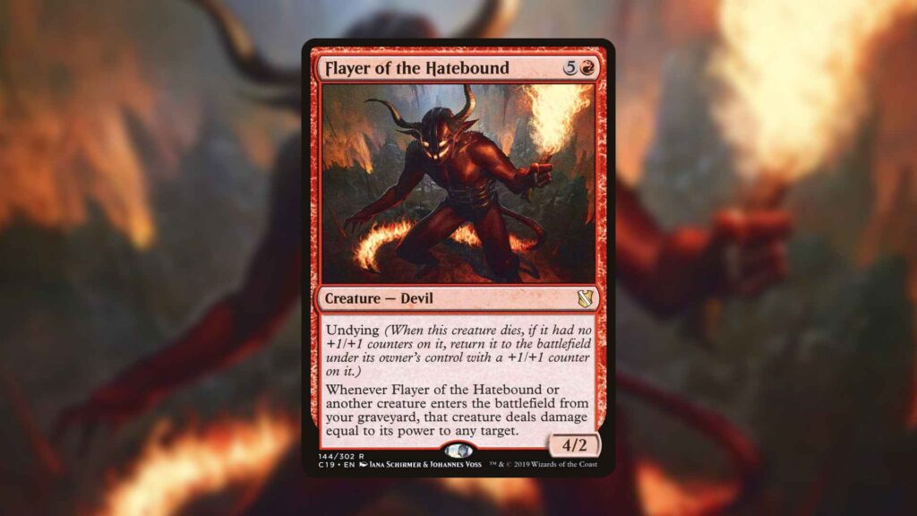 If you’re willing to spend some more mana and add a color, Champion of the Weird and Flayer of the Hatebound can end the game outright. The Undying mechanic gives Champion of the Weird 20 different two-card combos to exploit, some being more deadly than others.