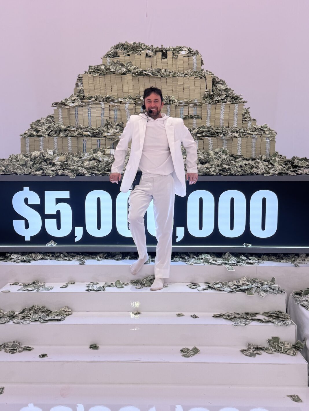 Producer Sean Klitzner stands with the Beast Games’ prize money, a total sum of five million dollars. Photo Courtesy of Sean Klitzner.