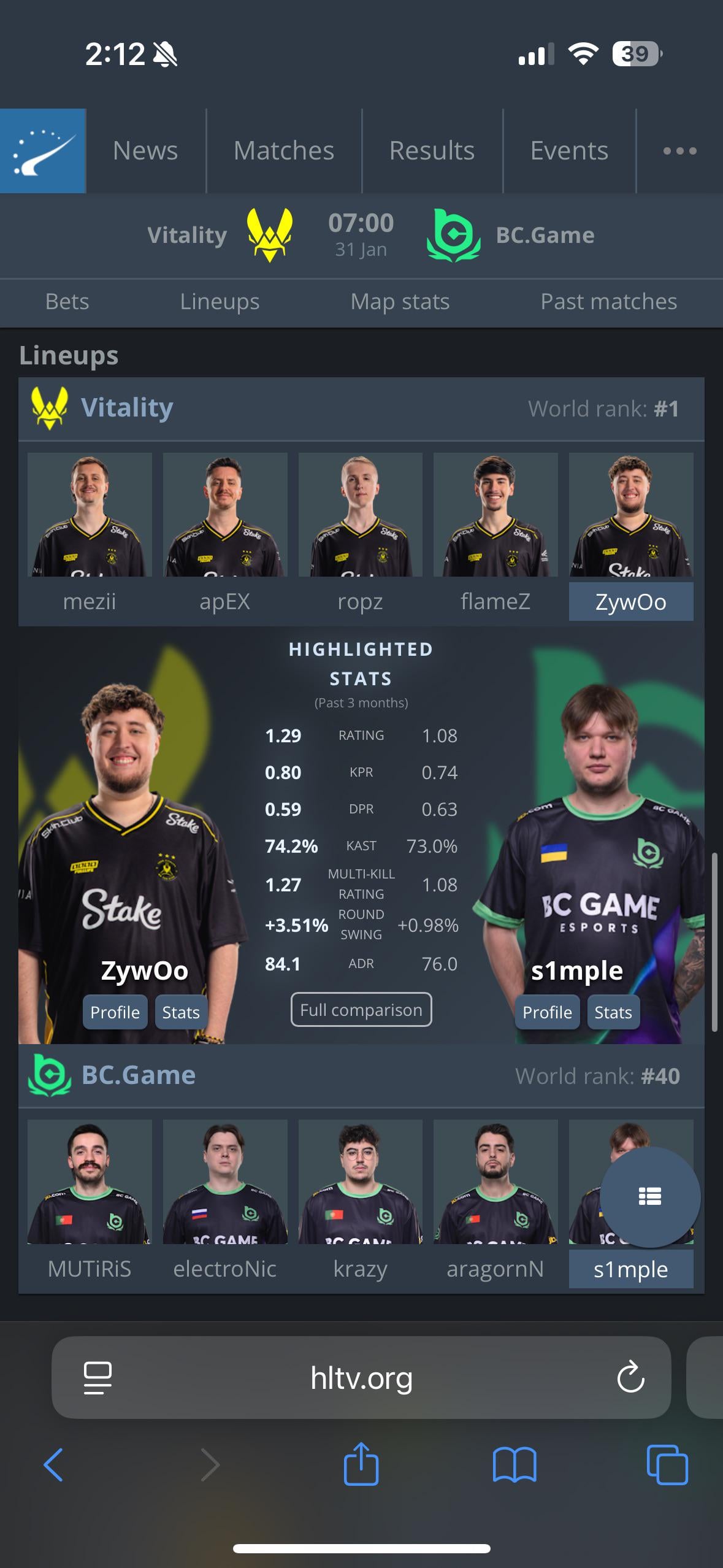 S1mple vs Zywoo tomorrow
