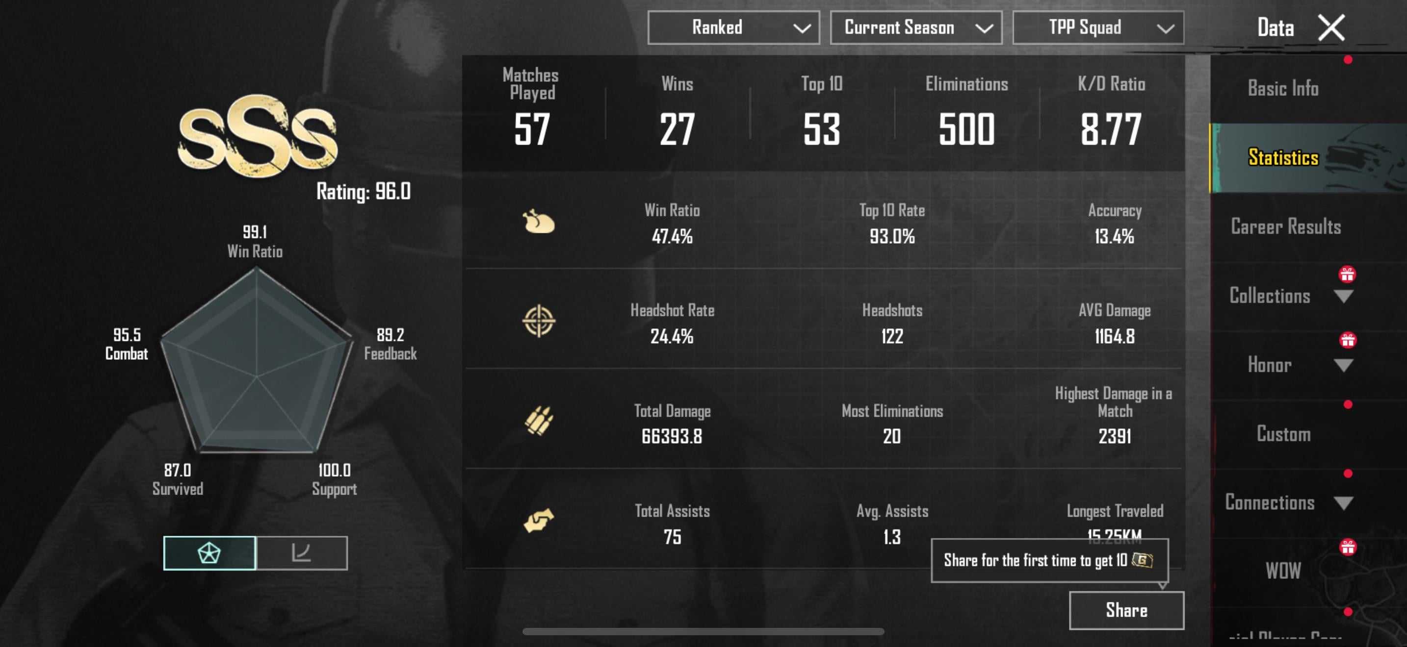 these are my current states just got Ace and have been solo queuing the entire time and it’s been a struggle lol. PLAYERUNKNOWN'S BATTLEGROUNDSPLAYERUNKNOWN'S BATTLEGROUNDS Mobilepubgpubg mobile