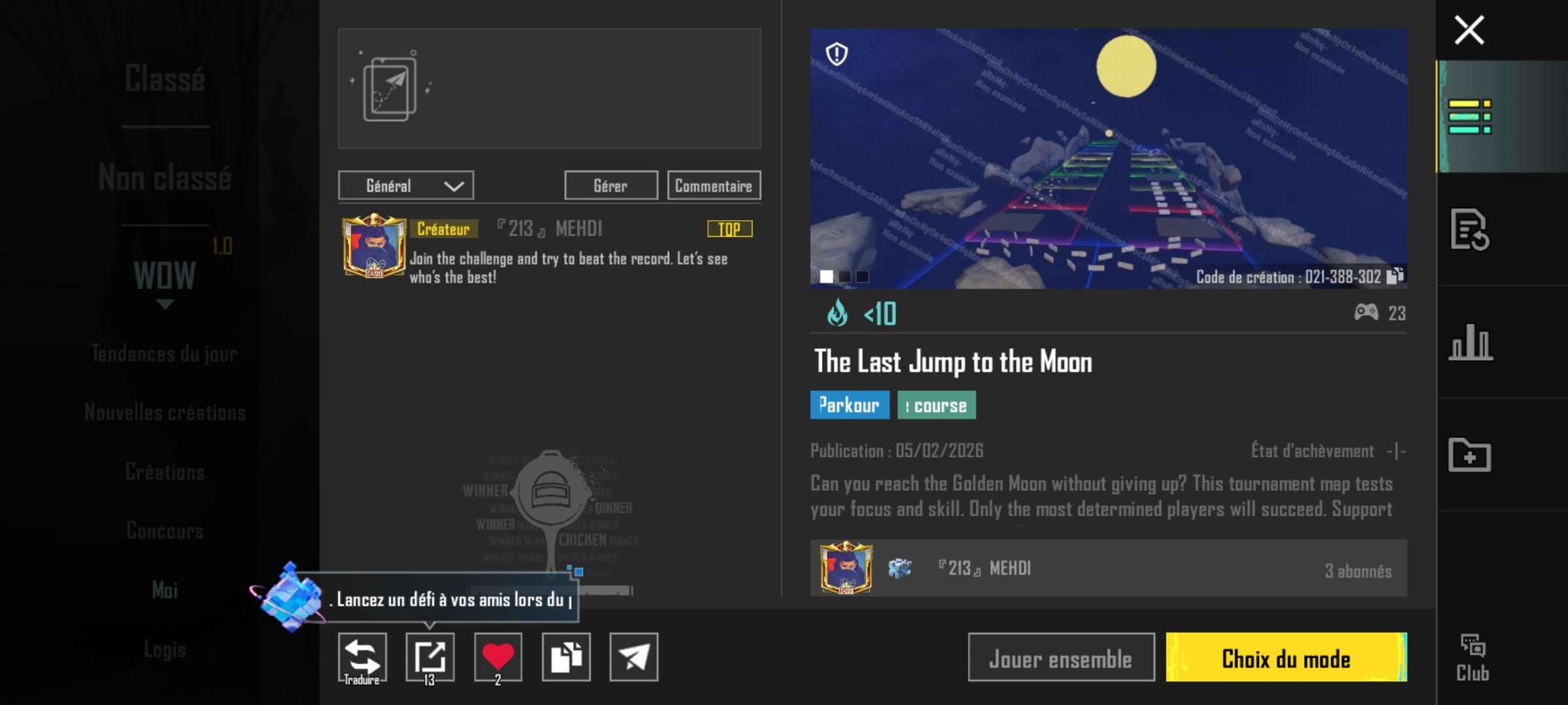 Join the Golden Moon Event🌙Play this map for at least 3 minutes for the events and try to set the first record. Can you beat the challenge and reach the Golden Moon?Test your skills and share it with your friends ❤️code map : 21388302 PLAYERUNKNOWN'S BATTLEGROUNDSPLAYERUNKNOWN'S BATTLEGROUNDS Mobilepubgpubg mobile